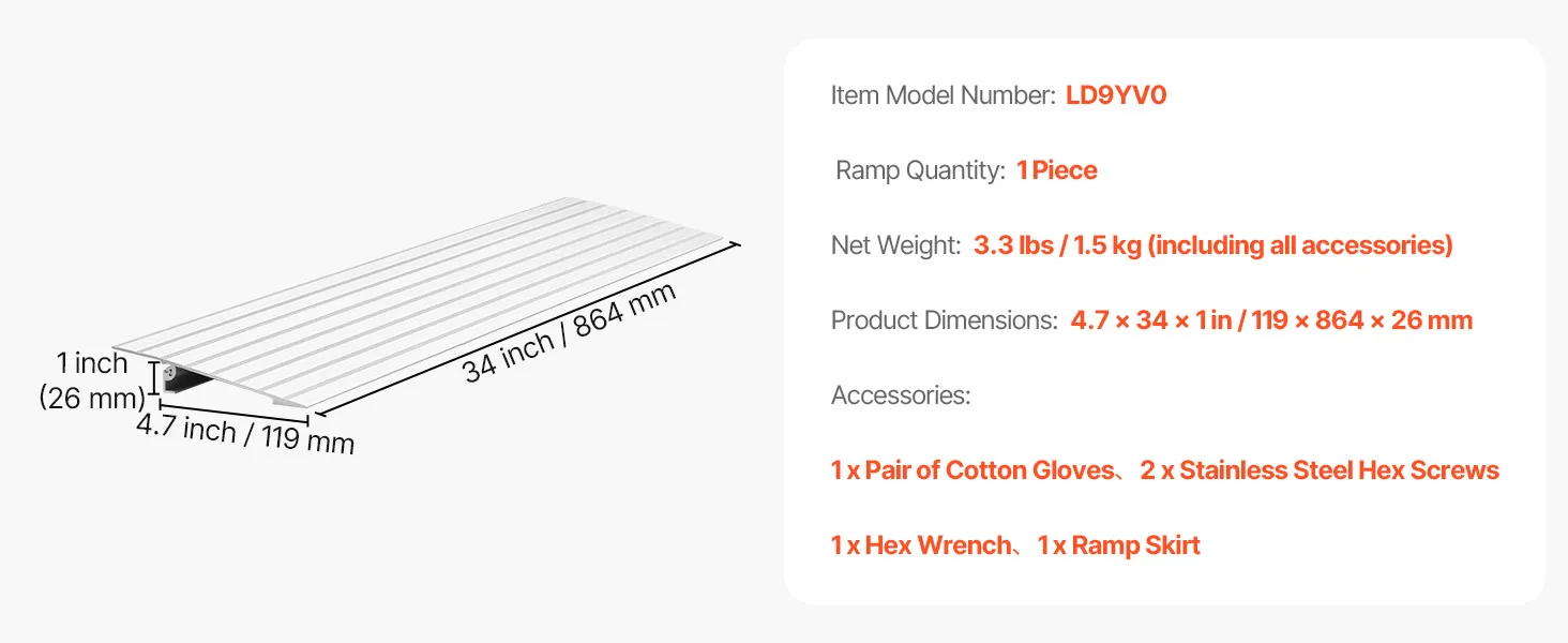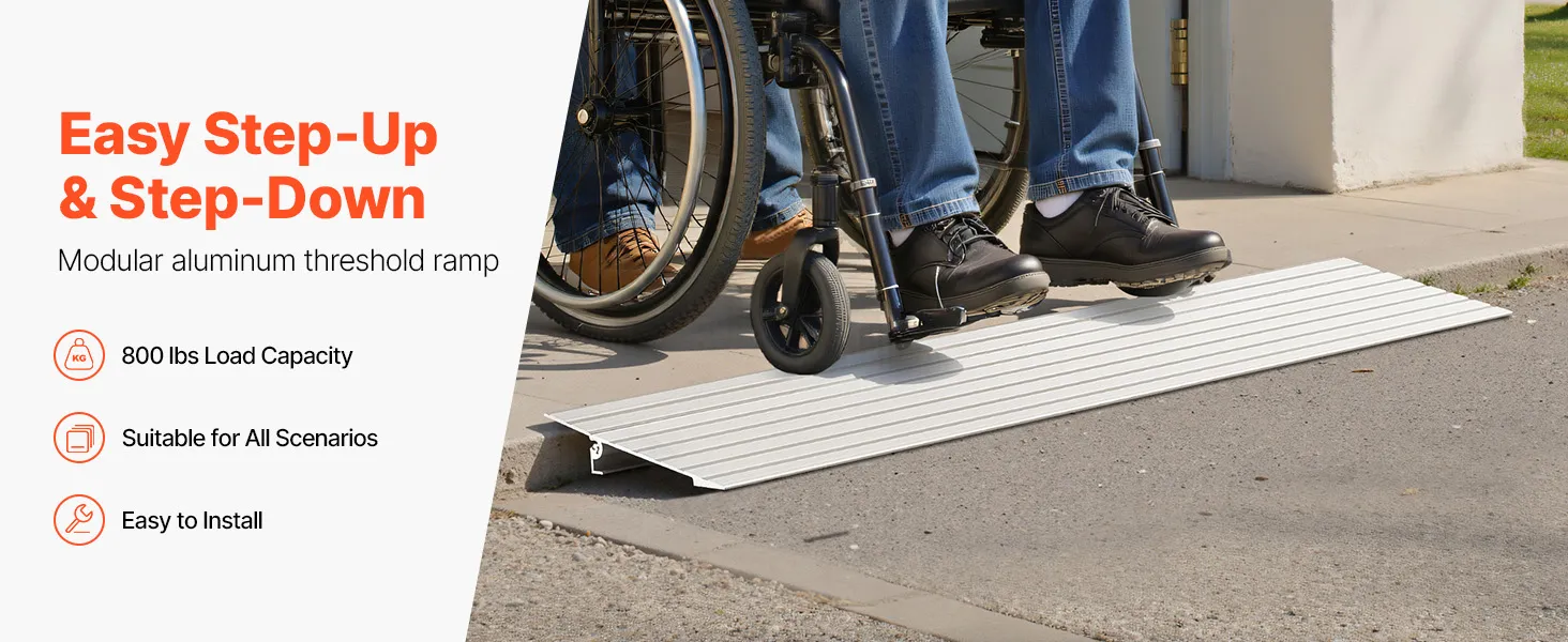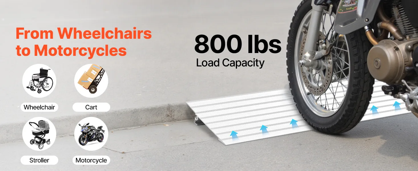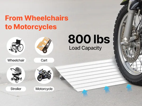 Platzieren Sie die Rampe für die Vordertür auf Schwellen, Garagenrampen oder Bordsteinen und rollen Sie mühelos! Die 1-Zoll (2,54 cm)-Erhöhung passt perfekt, sodass die Räder reibungslos gleiten, ohne zu stoßen oder hängen zu bleiben.