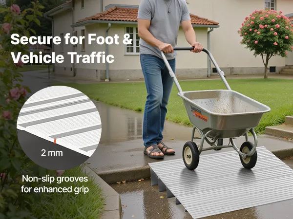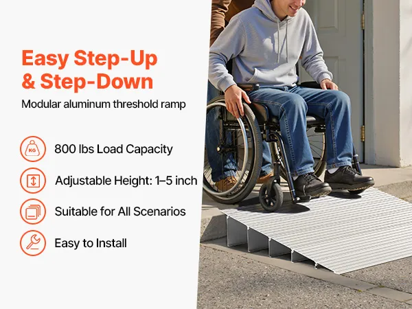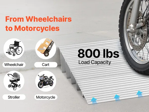 Platzieren Sie die Rampe für die Vordertür auf Schwellen, Garagenrampen oder Bordsteinen und rollen Sie mühelos! Die 5-Zoll (12,7 cm) Erhöhung passt perfekt, sodass die Räder reibungslos gleiten, ohne zu stoßen oder hängen zu bleiben.