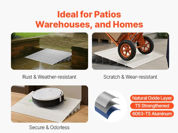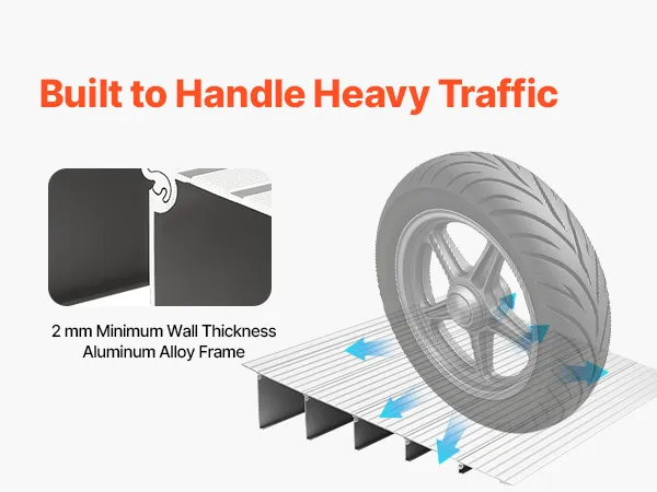 Hohe Belastbarkeit: Diese Türschwellenrampe aus 6063-T5 Flugzeugaluminium mit einem soliden 2-mm-Kern trägt bis zu 360 kg. Sie bleibt auch unter schweren Rollstühlen, Karren oder Ausrüstung stabil.