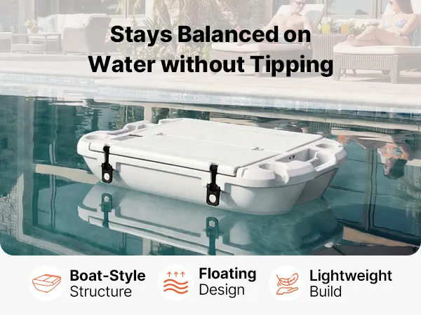 Die schwimmende Kühlbox im Bootsstil mit breiter Basis sorgt für Stabilität und schwimmt auch bei voller Beladung sicher. Die an einen Bootsrumpf angelehnte Struktur verringert die Kippgefahr und erleichtert so den Zugang und das Abschleppen.