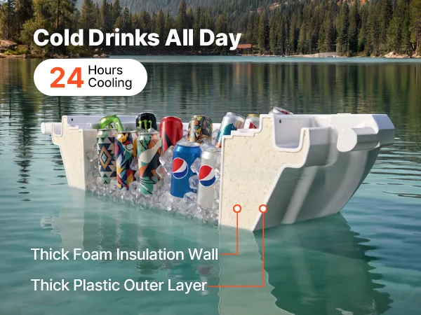 Diese schwimmende Kühlbox verfügt über eine robuste Außenhülle und eine dicke Isolierung für langanhaltende Kühlung. Sie ist für den Einsatz im Freien und Sonneneinstrahlung geeignet und hält Eis länger kalt, sodass Ihre Lebensmittel und Getränke lange kühl bleiben.