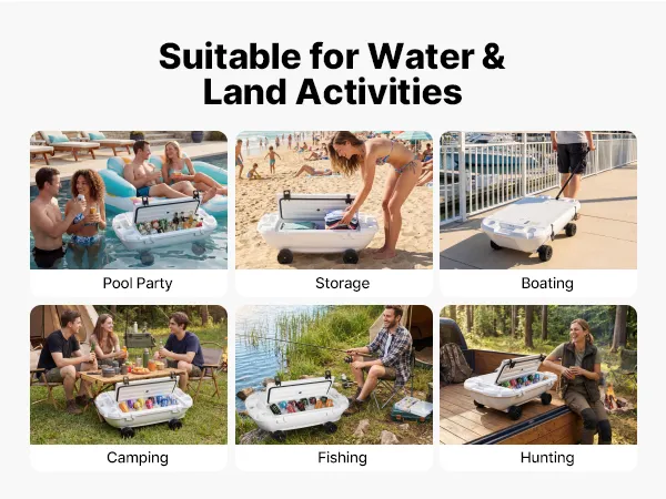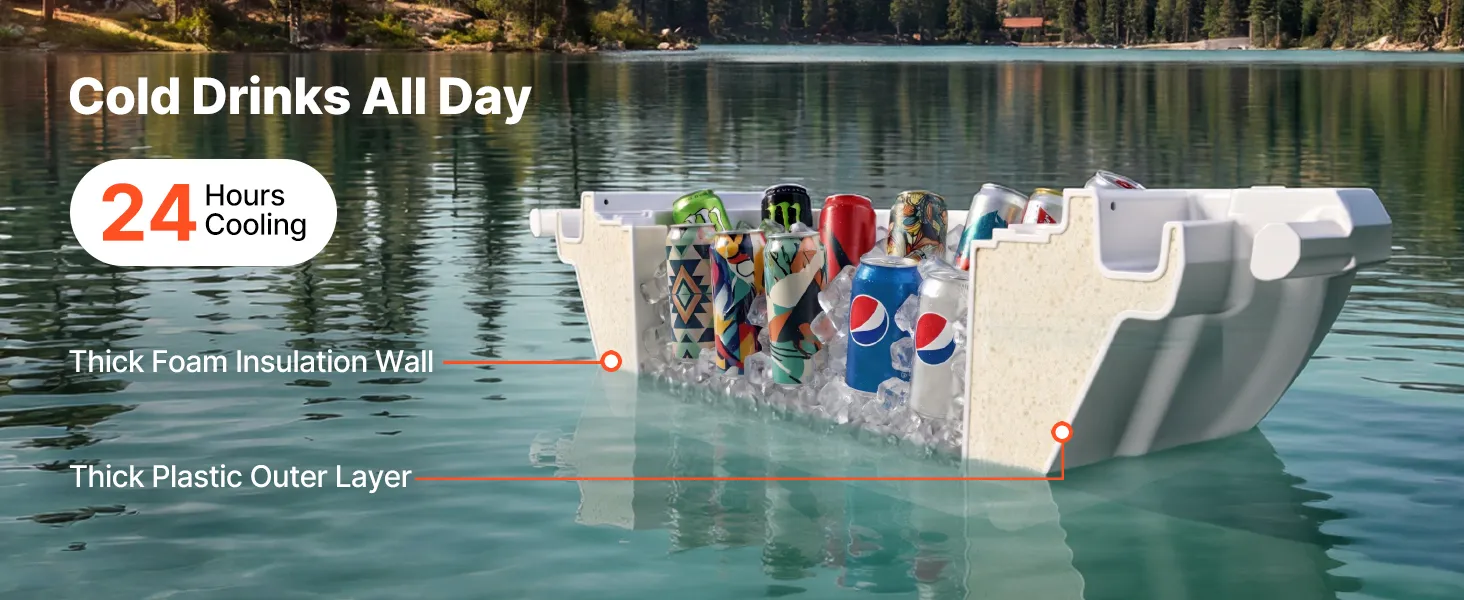 Bereit für jedes Abenteuer an Land & Wasser: Diese schwimmende Kühlbox ist ideal für Seen, Flüsse, Strände und Pools. Auch beim Camping, Bootsausflügen, Grillpartys und Gartenfesten sorgt sie dafür, dass Erfrischungen immer griffbereit sind