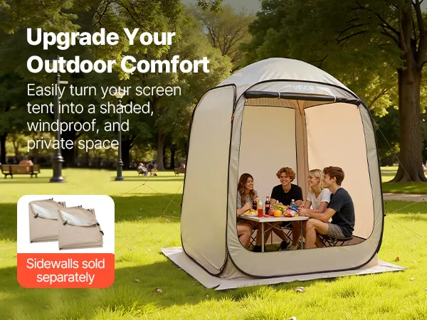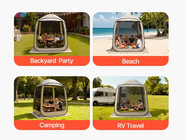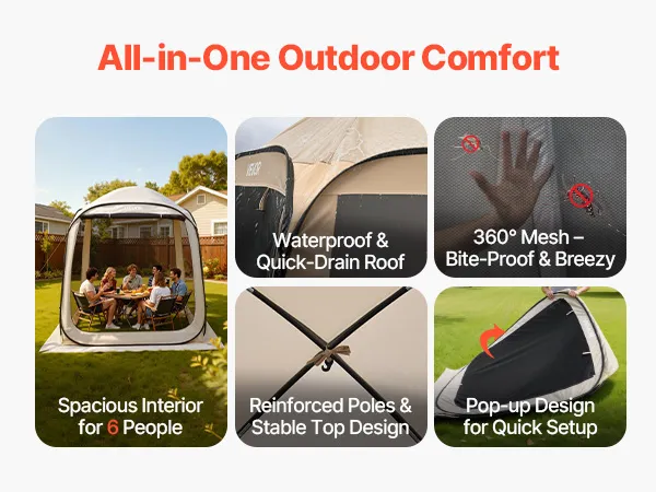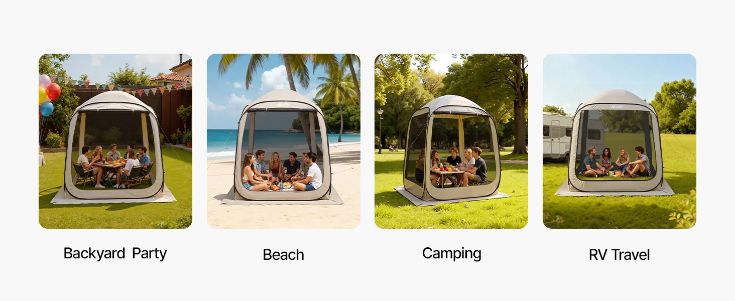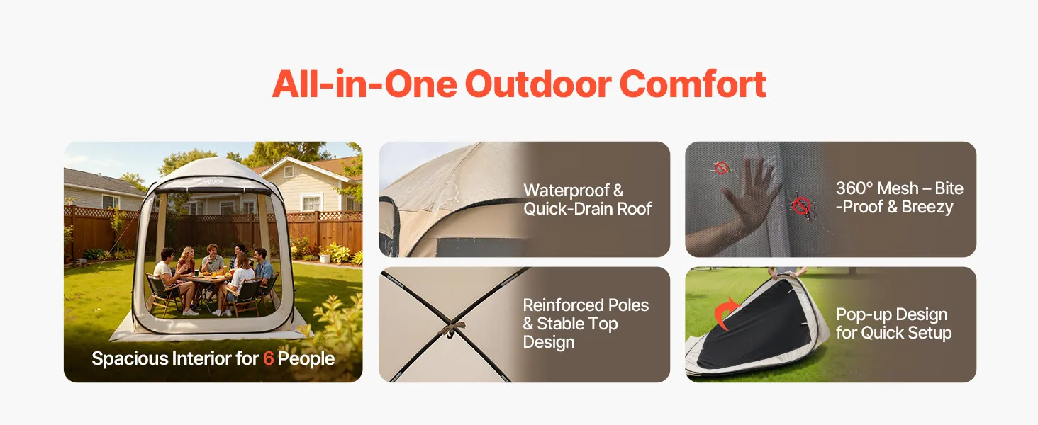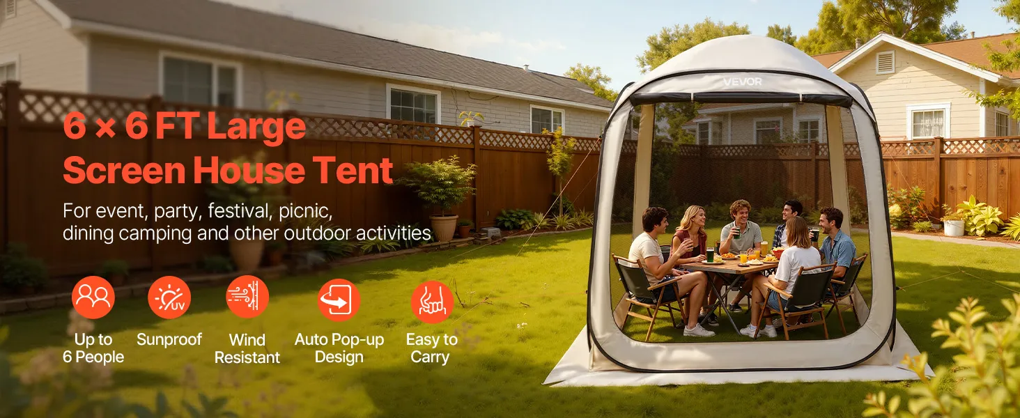 VEVOR Campingzelt, 182,88x182,88x219,4 cm, Partyzelt für 4-6 Personen, Pop Up Zelt mit Tragetasche, Netz-Seitenwänden und Heringen, für Garten, Terrasse und Outdoor-Aktivitäten, Beige