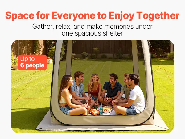 Mit einer großzügigen Größe von 182,88 x 182,88 cm (6 x 6 Fuß) bietet dieses Pop-up-Zelt Platz für bis zu 6 Personen und eignet sich zur Aufstellung von Stühlen und anderen Gegenständen, sodass Sie einen schattigen Ruheplatz finden.