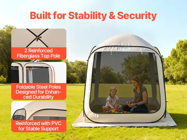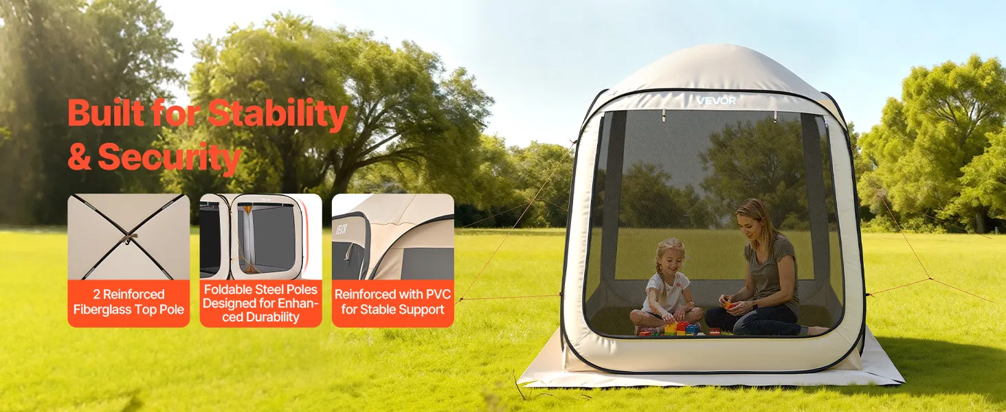 Die verstärkte Fiberglas-Oberstange sorgt dafür, dass das Pop-up-Zelt auch bei windigen Bedingungen und längerem Gebrauch stabil steht.