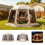 VEVOR Screen House Tent, 3660 x 3380 x 2300 mm, 10-12 Person Pop Up Screen Tent, Portable Screened in Canopy with Carry Bag, Netting Sides, Ground Stakes, for Garden, Patio, Outdoor Activities, Beige