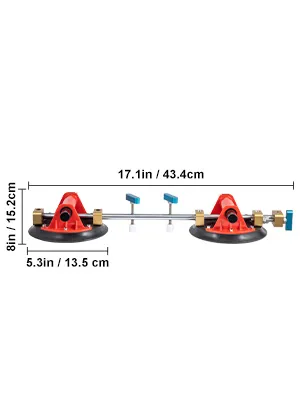 Dieser Saugheber ist mit oberen Knöpfen zur Hebelverstellung und seitlichen Knöpfen zur Spielverstellung mit einer maximalen Höhe von 0,8 Zoll / 20 mm und einem einstellbaren Spielbereich von 0 bis 1,6 Zoll / 0 bis 40 mm ausgestattet.