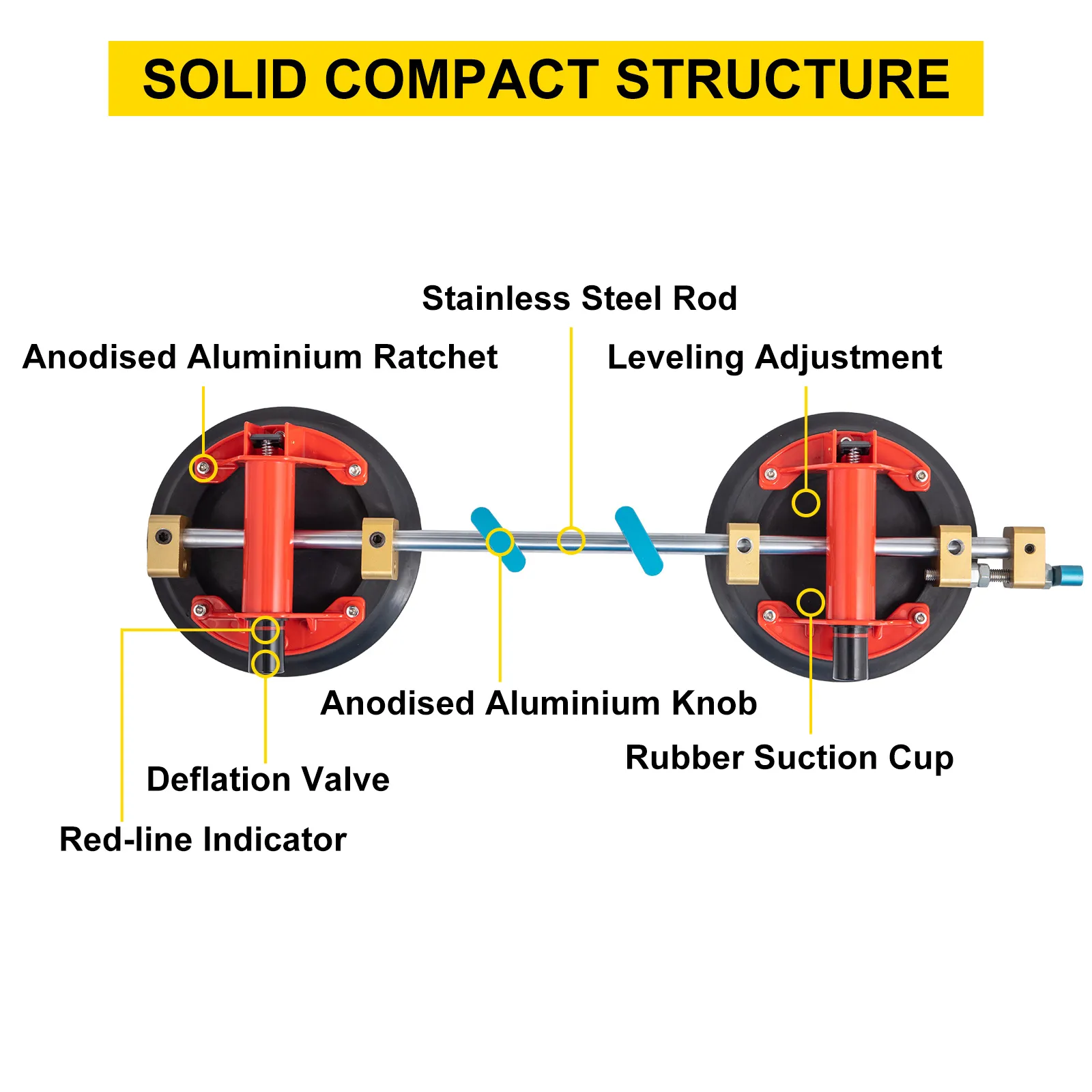 Doppelte 20,3-cm-Saugnäpfe mit einer maximalen Saugkraft von 260 kg können die Arbeitsplatte präzise befestigen. Die Saugnäpfe bieten eine durchgehende Abdichtung für einen zuverlässigen Halt ohne Luftleckage, viel stabiler und sicherer.