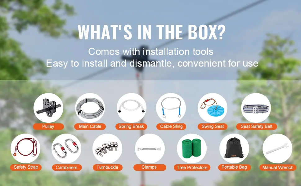 Die Installation des VEVOR-Zipline-Kits ist einfach. Es enthält alle erforderlichen Werkzeuge und Hardware. Sie benötigen keine professionelle Hilfe; die Anweisungen sind klar und leicht zu befolgen. Sicherheit ist bei der Installation das Wichtigste. Das Kit enthält Filzstreifen zum Schutz der Bäume. Die Zipline kann zwischen Bäumen aufgestellt oder an Pfosten verankert werden. Dieses Gerät ist so konzipiert, dass es sicher ist, ohne die Umwelt zu schädigen. Nach der Installation können Sie die Spannung des Kabels anpassen. Dies gewährleistet eine reibungslose, schnelle Fahrt. Für dieses unterhaltsame Projekt mit Familie und Freunden sind einige Stunden erforderlich.