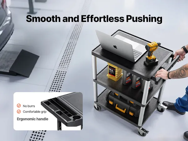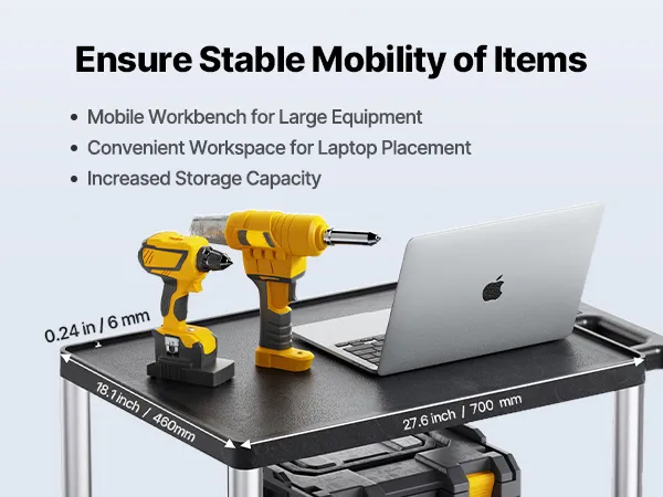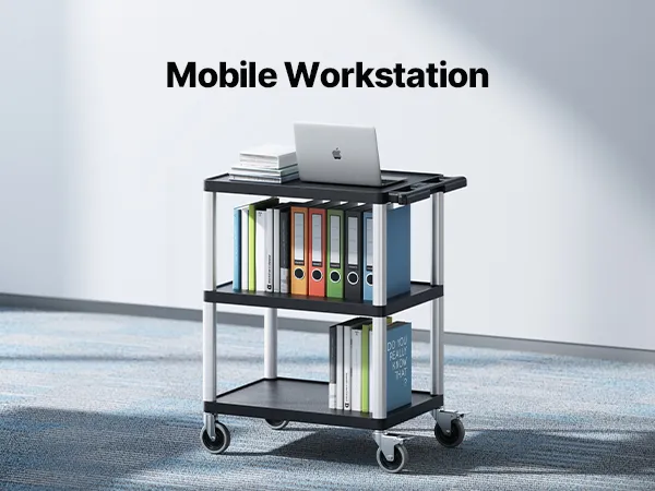 Kompaktes, leicht zu beladendes Design: Dieser dreistöckige Allzweckwagen ist ideal für große Werkzeuge, Laptops und mehr! Die flache Oberseite dient als mobile Arbeitsstation, während die mittleren und unteren Ablagen problemlos lange Gegenstände aufnehmen. Überschüssige Kabel lassen sich ordentlich in der Griffrille verstauen, um Ordnung zu schaffen. Mit nur 46 cm Breite gleitet er mühelos durch enge Räume!
