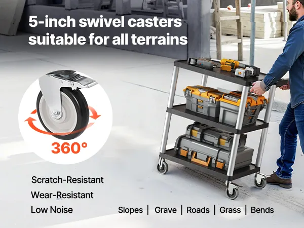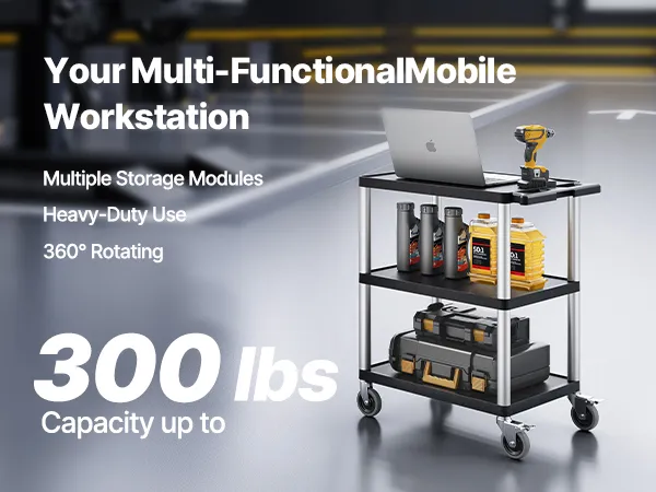 Lernen Sie Ihren ultimativen mobilen Helfer kennen! Dieser Mehrzweckwagen trägt bis zu 136 kg und ist damit die ideale Lösung für die Aufbewahrung von Werkzeugen, Geräten und Ersatzteilen. Dank der vier leichtgängigen Lenkrollen können Sie ihn mühelos überallhin schieben – vom Büro bis zum Lager.