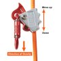 VEVOR-Kletterseil mit orangefarbenem Seil und rotem Karabiner, der die Bewegungsrichtungen anzeigt.