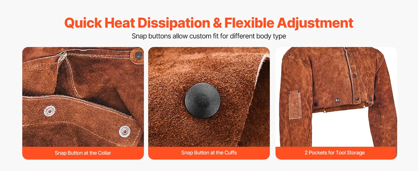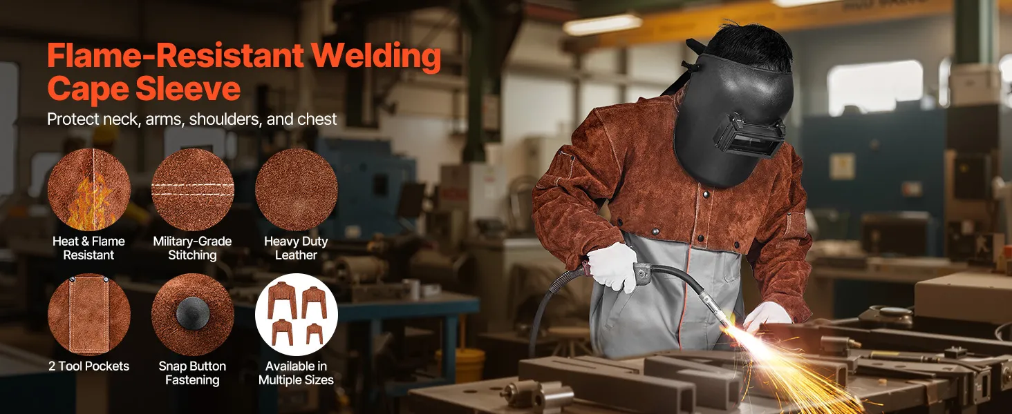Flammhemmendes Rindsleder: Hergestellt aus strapazierfähigem Vollrindsleder und mit starkem, flammhemmendem Kevlar-Faden vernäht, gewährleistet der VEVOR-Schweißumhangärmel eine hohe Haltbarkeit und zuverlässigen Schutz und schützt Sie vor Funken, Flammen, Hitze und Brandgefahren.