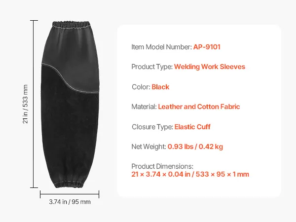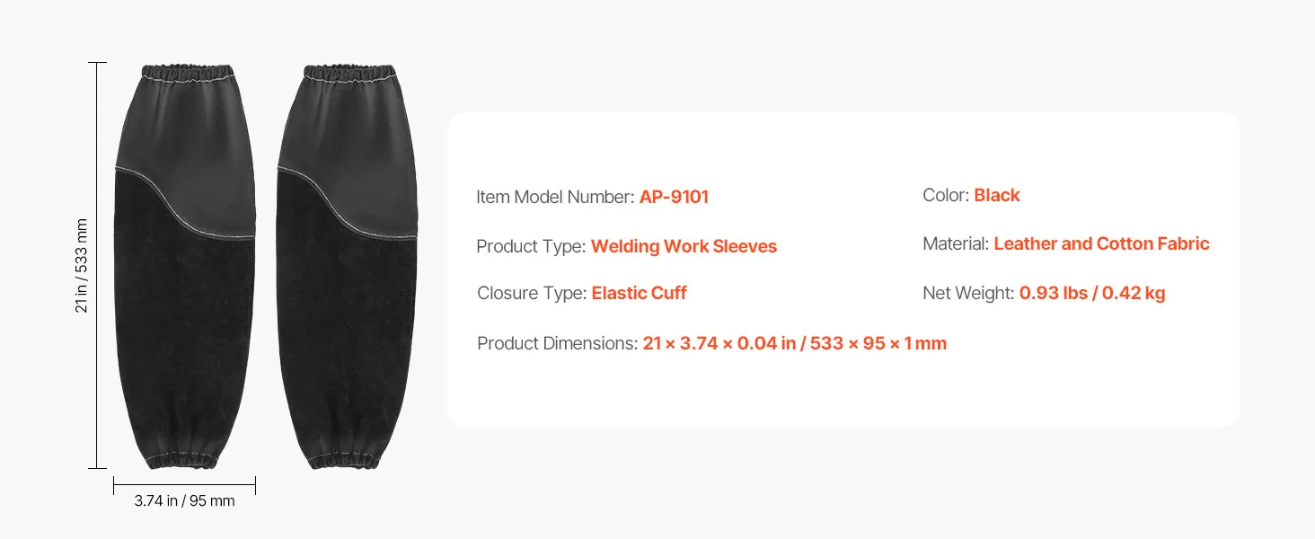 Mit einer Länge von 533 mm bieten diese langen Schweißärmel erweiterten Schutz vom Handgelenk bis zum Oberarm und sind perfekt für verschiedene Anwendungen zum Schutz vor Funken, Hitze und herumfliegenden Splittern.