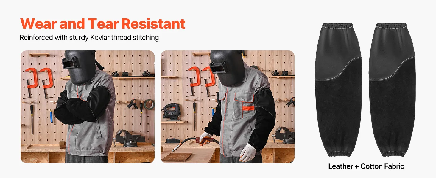 Verbesserte Haltbarkeit: Der Rindslederteil ist mit starkem, flammhemmendem Kevlarfaden vernäht, wodurch die VEVOR Schweißer-Arbeitsärmel außergewöhnlich langlebig und zuverlässig sind. Sie sind verschleißfest und schützen Ihren Arm effektiv vor Funken, Flammen und Hitze.