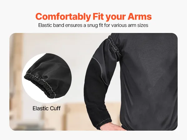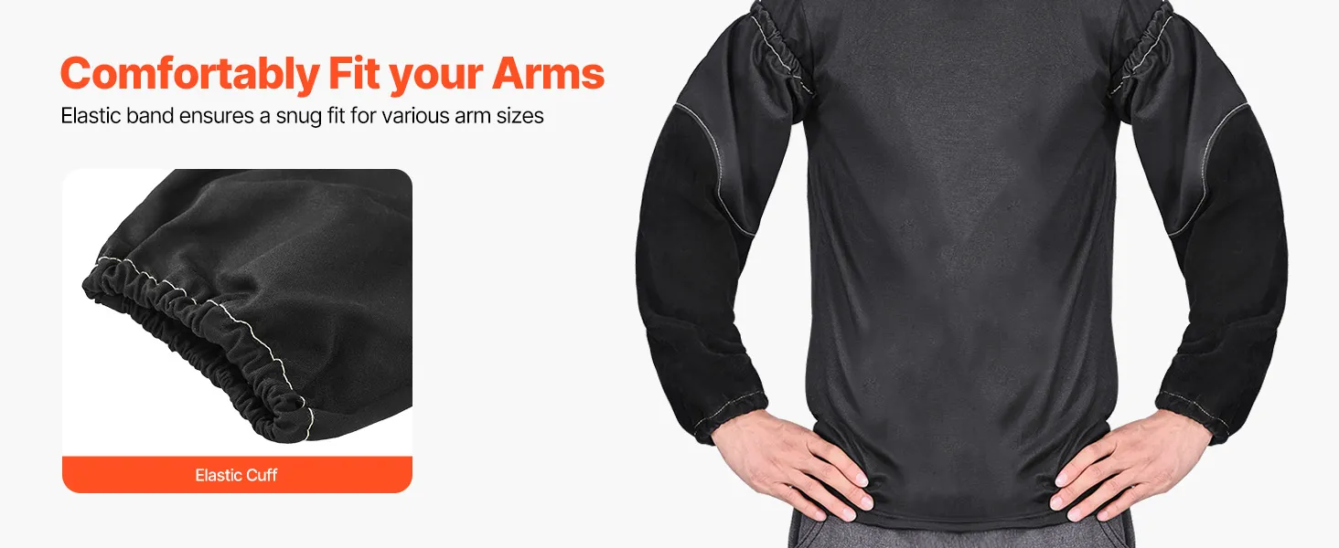 Diese hitzebeständigen Armschützer verfügen an beiden Enden über elastische Bündchen, die einen sicheren und bequemen Sitz gewährleisten und gleichzeitig das Eindringen von Funken, Staub und Schmutz verhindern.