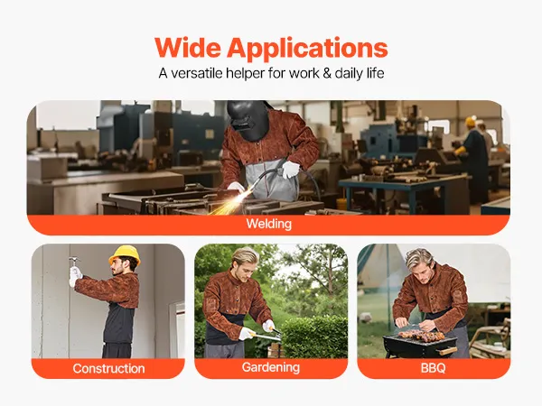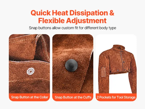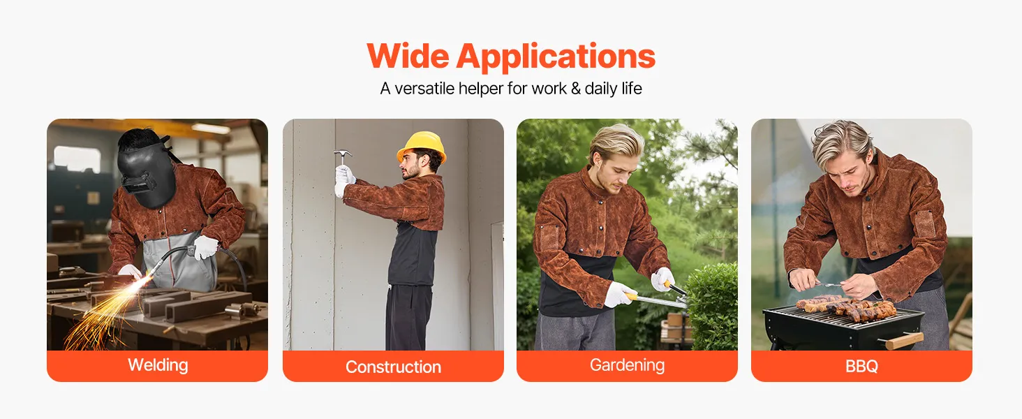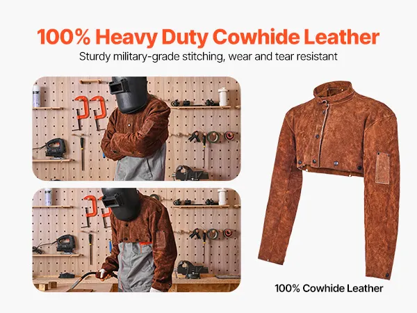 Flammhemmendes Rindsleder: Hergestellt aus strapazierfähigem Vollrindsleder und mit starkem, flammhemmendem Kevlar-Faden vernäht, gewährleistet der VEVOR-Schweißumhangärmel eine hohe Haltbarkeit und zuverlässigen Schutz und schützt Sie vor Funken, Flammen, Hitze und Brandgefahren.