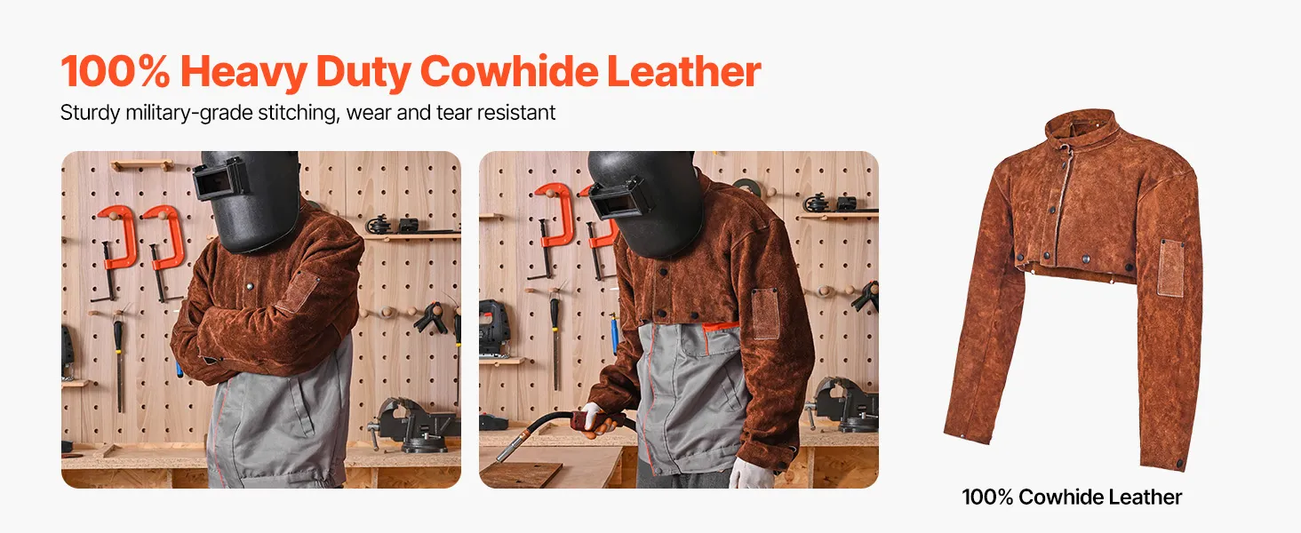 Dieser Schweißerumhang aus strapazierfähigem Rindsleder mit Nähten in Militärqualität ist verschleißfest, reißfest und für harte Arbeiten wie Schweißen, Schmiedearbeiten und Holzbearbeitung geeignet.