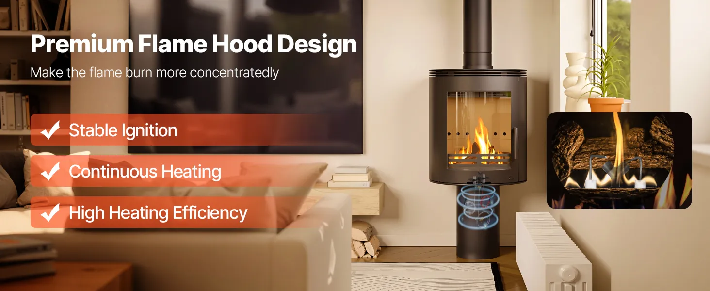 Unsere Gaszündanlage für Kamine verfügt über eine hochwertige Flammenhaube, die die starke Flamme gleichmäßiger brennen lässt und eine schnelle und vollständige Verbrennung ermöglicht. Die gleichmäßige Flamme liefert kontinuierlich hohe Wärmeenergie und verbessert so die Heizeffizienz erheblich.