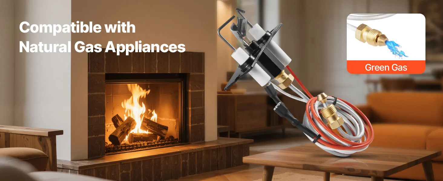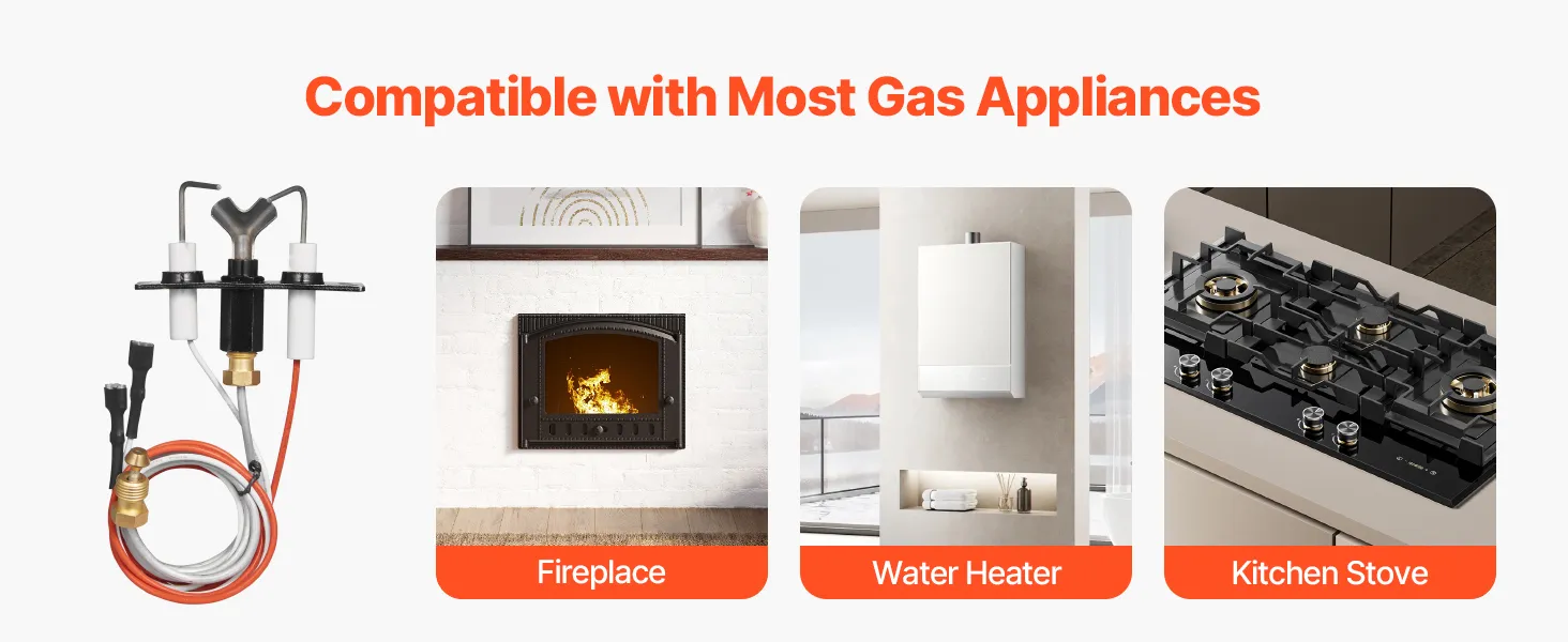 Diese Gaszündanlage ist mit den meisten gängigen Kaminen auf dem Markt kompatibel. Sie passt auch in Haushaltswarmwasserbereiter und Küchenherde und erfüllt problemlos die Zündanforderungen verschiedener Gasgeräte.