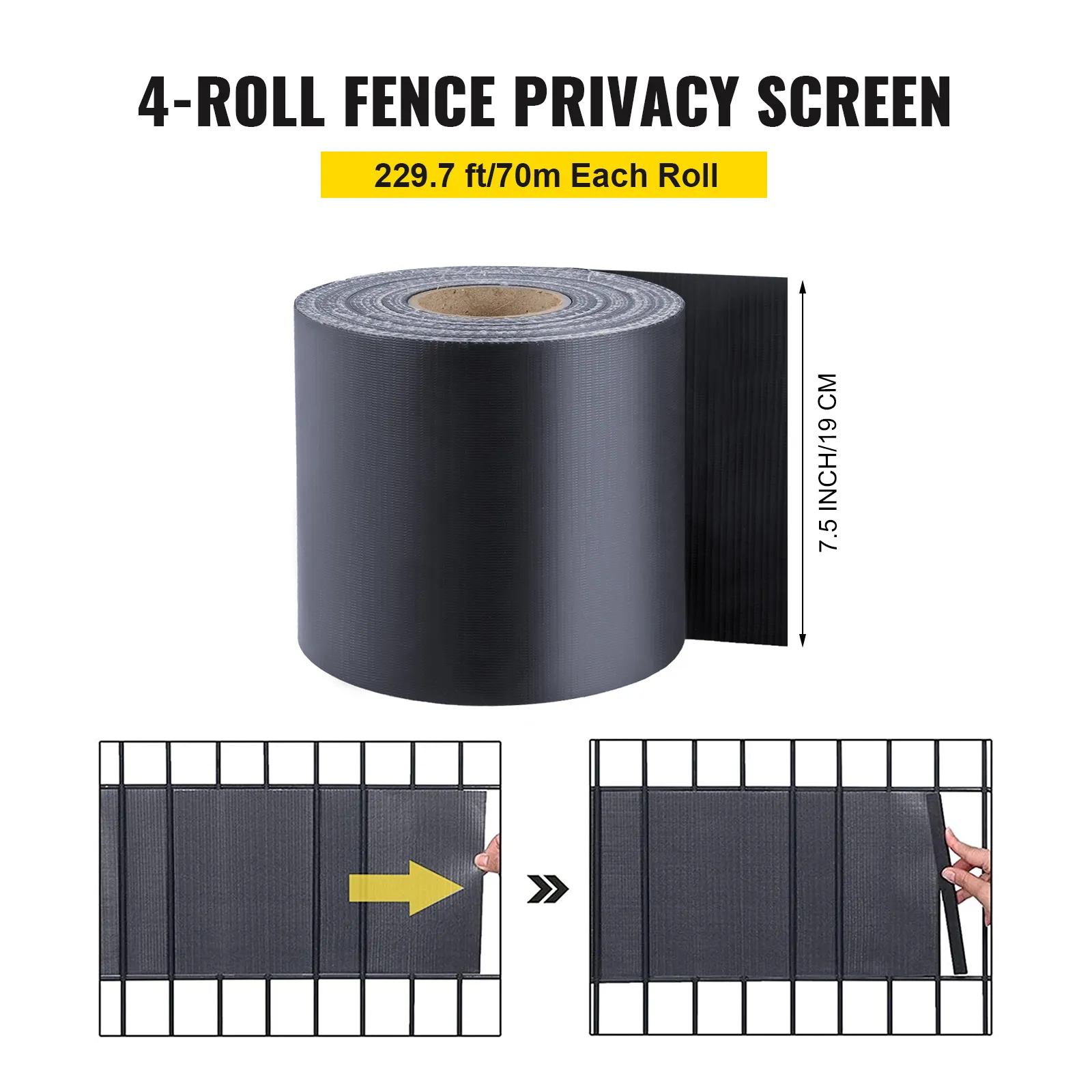 Diese Auflistung enthält Vier-Rollen-Sichtschutzgitter mit einer Länge von 70 m pro Rolle. Breite des Zaunbildschirms: 19 cm. Sie können ihn auf eine passende Größe für Ihren Zaun zuschneiden.