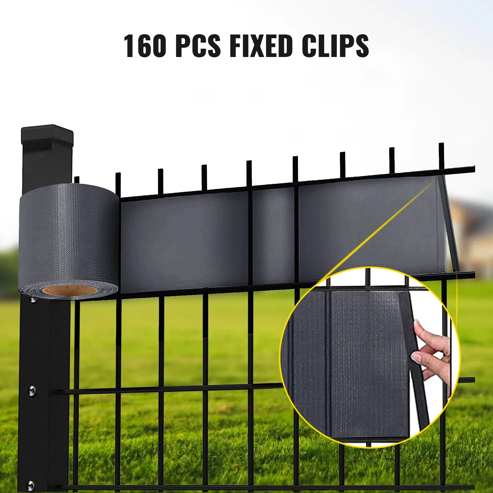 Wir liefern 160 Befestigungsklammern für Ihre bequeme Installation. Sie müssen die Zaunabdeckung durch die vorhandenen Zäune weben und die Enden mit den mitgelieferten Befestigungsclips fixieren.