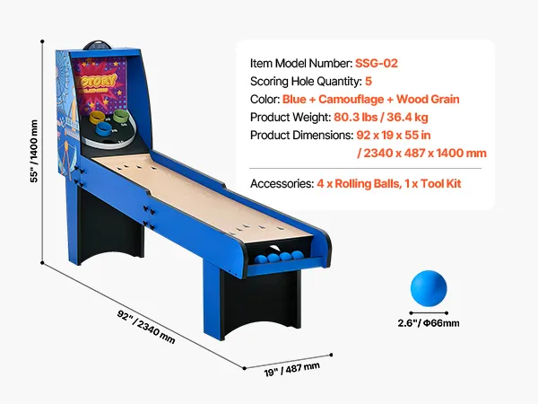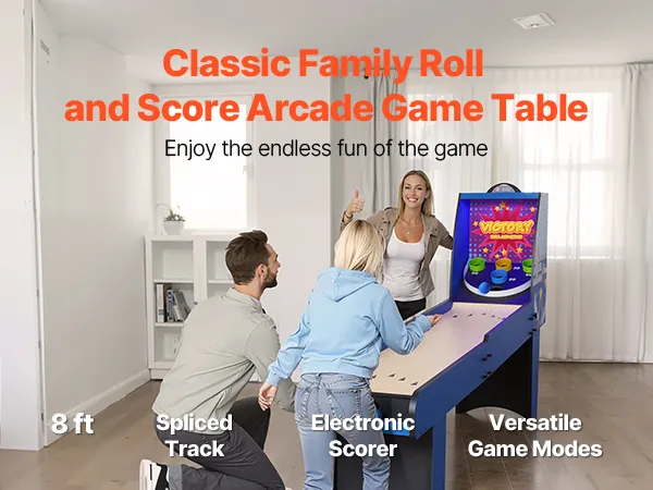8 Fuß Roll und Score Arcade-Tisch: Der 8 Fuß Roll & Score Arcade-Spieltisch bietet den Spielern viel Bewegungsfreiheit und ein nahtloses Gameplay. Sein geräumiges Design sorgt für ein interaktives und komfortables Erlebnis und macht ihn zur idealen Ergänzung für Familientreffen oder Spieleabende mit Freunden. Egal, ob Sie zum Spaß oder in einem freundschaftlichen Wettbewerb spielen, er bietet allen Beteiligten stundenlange Spannung und Herausforderung