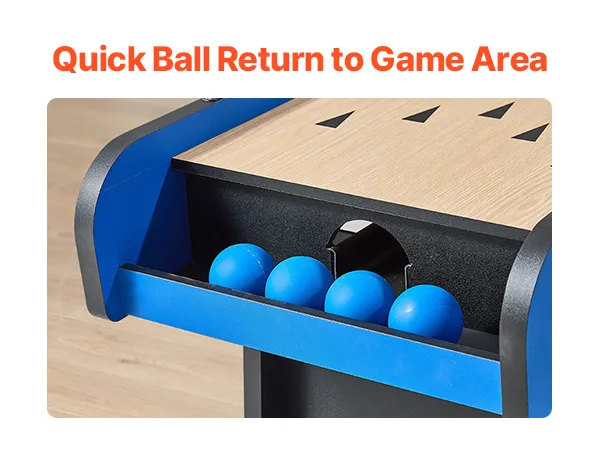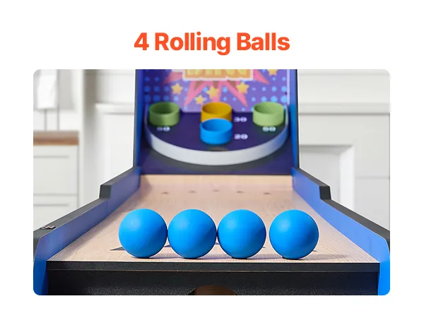 Punktezähler auf zwei Bildschirmen und 4 Bälle: Mit einem Punktesystem auf zwei Bildschirmen können die Spieler bei diesem Ball-Arcade-Spiel ihre Punkte in Echtzeit verfolgen, was für noch mehr Spannung und Wettbewerb sorgt. Außerdem enthält das Set 4 rollende Bälle (2,6 Zoll / Φ 66 mm), die jedem Spiel zusätzlichen Spaß und zusätzliche Energie verleihen