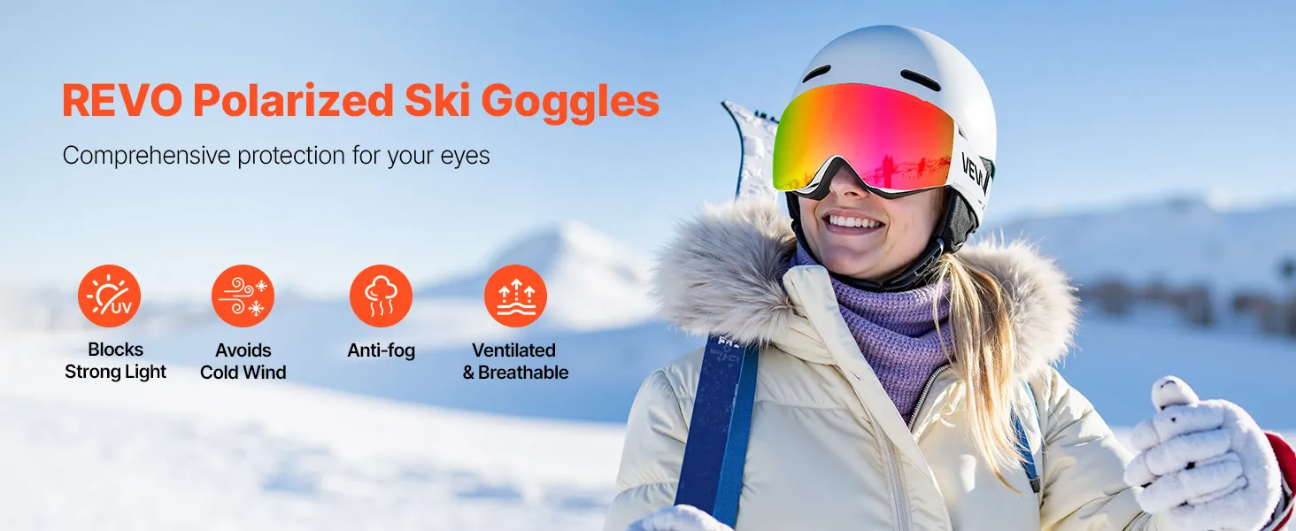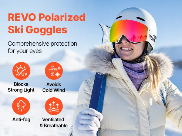 Diese Revo-Skibrille blockiert grelles Sonnenlicht und reduziert die Blendung durch Schnee, um Schneeblindheit vorzubeugen. Sie schützt Sie vor kaltem Wind, sorgt für beschlagfreie Sicht und sorgt für frische Luft, damit Sie jede Abfahrt unbesorgt genießen können.