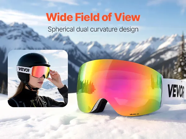 OTG-Rahmendesign: Die Skibrille mit breitem Rahmen passt ohne Druck auf die meisten Brillen bis zu einer Größe von 4,4 x 2,2 Zoll / 11,2 x 5,6 cm. Sie sitzt fest, ohne zu verrutschen, und bietet Ihnen den ganzen Tag über eine weite, ungehinderte Sicht