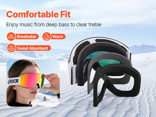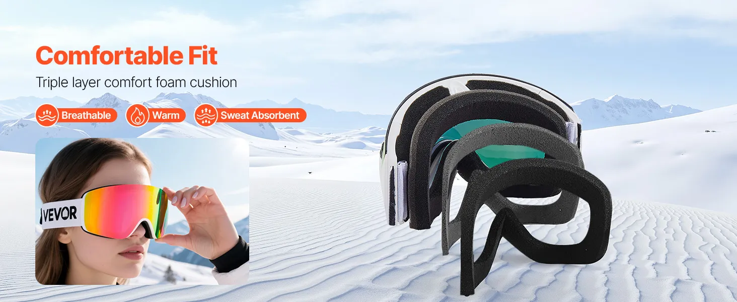 Der weiche dreilagige Schaumstoff der Snowboardbrille passt sich sanft Ihrem Gesicht an, absorbiert Stöße und blockiert kalte Luft. Das atmungsaktive, feuchtigkeitsableitende Design hält Sie warm, schweißfrei und komfortabel für den ganzen Tag Skifahren.