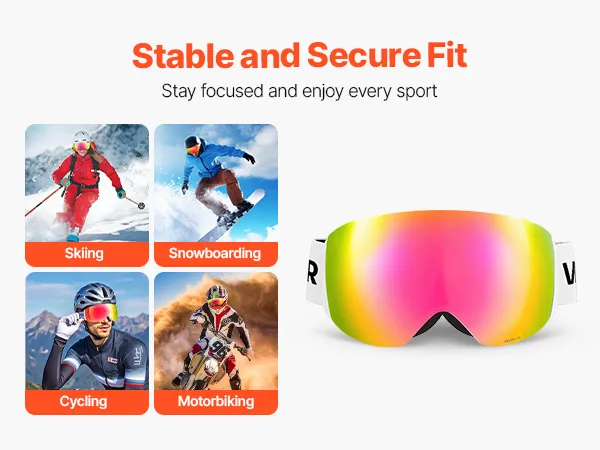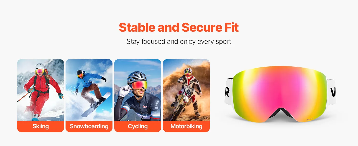 Die bequeme Passform passt sich Ihrer Gesichtsform an, sodass die Skibrille auch bei intensiver Aktivität an Ort und Stelle bleibt. Klare, beschlagfreie Sicht sorgt für konzentriertes Sehen beim Skifahren, Snowboarden oder Radfahren.
