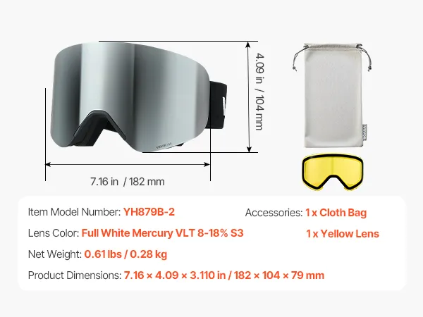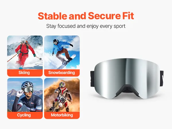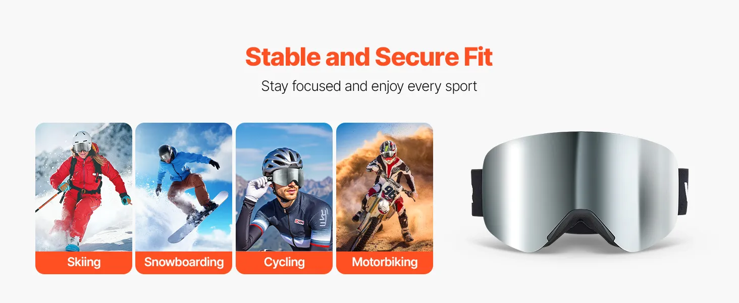 Doppelmagnetsystem: Dank der leistungsstarken Doppelmagnete unserer Antibeschlag-Schneebrille können Sie die Gläser in Sekundenschnelle austauschen und sie bei Hochgeschwindigkeitsaktionen fest verriegeln, sodass Sie für jedes Wetter gerüstet sind