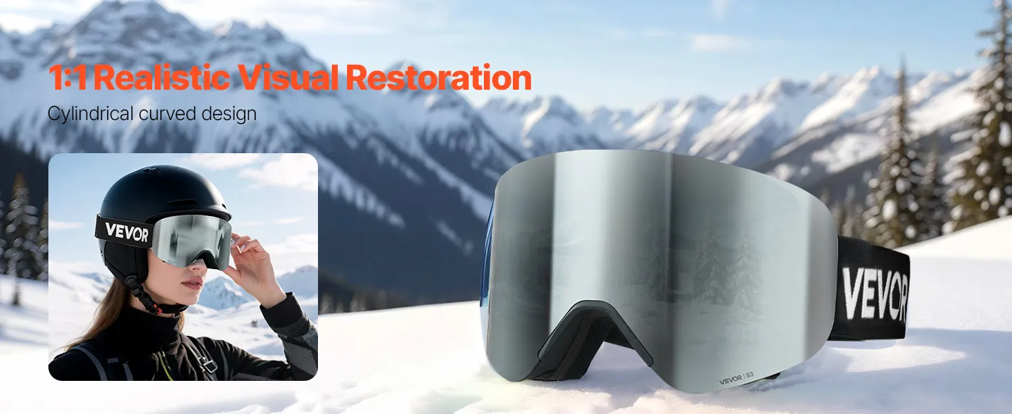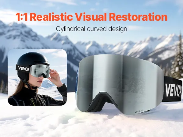 Die fortschrittliche Zylinderlinse der Schneebrille bietet eine verzerrungsfreie 1:1-Sicht und ermöglicht so eine natürliche Sicht auf die Piste. Die sanfte Krümmung reduziert optische Verzerrungen und macht sie ideal für Profi-Skifahrer, die eine präzise Geländeeinschätzung benötigen.