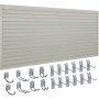 Diese Lamellenwandpaneele haben ein vielseitiges 3-Zoll-Nutdesign. So können Sie verschiedene Haken und Zubehörteile kombinieren. Die Befestigungen sind versteckt, was für ein stromlinienförmiges, schraubenfreies Aussehen sorgt. Sie können Ihre Werkzeuge und Geräte problemlos organisieren. So bleibt Ihr Platz aufgeräumt. Alle Paneele werden mit verschiedenen Hakentypen geliefert, darunter Einzel-, Doppel- und J-Haken. So können Sie Ihren Stauraum ganz einfach für verschiedene Gegenstände anpassen. Egal, ob Sie Werkzeuge, Bastelbedarf oder andere Gegenstände aufhängen müssen, diese Paneele sind für Sie da. Das universelle Design gewährleistet Kompatibilität mit den meisten Haken- und Zubehördesigns und bietet Flexibilität bei der Organisation Ihres Bereichs.