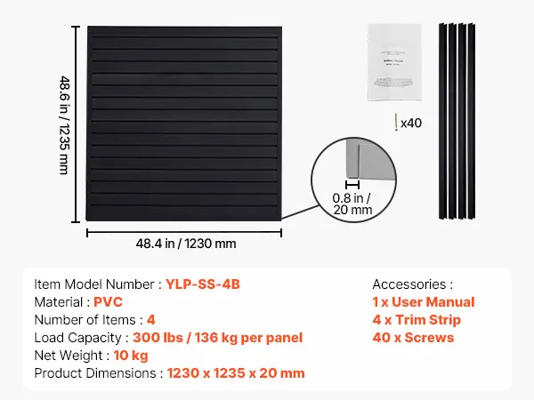 VEVOR Tool Wall 1230x1235x20 mm, PVC Garage Slatwall, 136 kg per panel, black wall organizer, slatwall panel with coupling structure & DIY cutting, suitable for storage & presentation