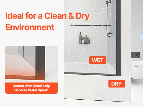 Auslaufschutz: Ausgestattet mit hochwertigen wasserdichten Streifen an der Unterseite sorgt diese halbe Duschtür für eine hervorragende Abdichtung, um Auslaufen zu verhindern und Ihren Badezimmerboden trocken und sicher zu halten