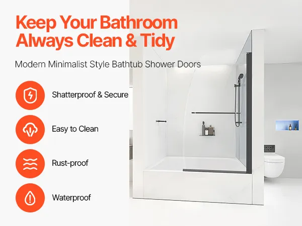 Robust & sicher: Diese rahmenlose Badewannen-Duschtür aus 0,23 Zoll (6 mm) dickem, bruchsicherem Hartglas. Selbst im seltenen Fall eines Bruchs bleibt das Glas intakt, ohne zu zersplittern, und bietet Ihnen maximalen Schutz.