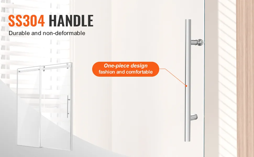 Der Griff aus Edelstahl 304 dieser Duschschiebetür aus Glas verfügt über ein integriertes Griffdesign für müheloses Schieben und Ziehen. Er ist nicht nur schön und elegant, sondern auch korrosionsbeständig und leicht zu reinigen.