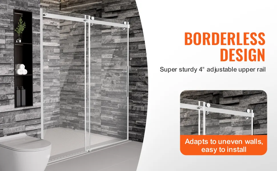 Diese Duschschiebetür verfügt über ein extrem stabiles oberes Geländer mit einem um 10,16 cm verstellbaren Design, um verschiedenen Installationsanforderungen gerecht zu werden.