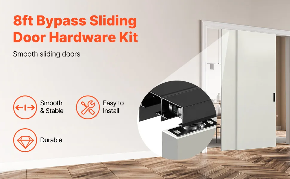 VEVOR Schiebetür-Beschlagschienensatz Schiebetürsystem 2438 mm, Doppelschienen Schiebetürsystem aus Aluminiumlegierung, passende Türbreite 1232 mm x 2, Schiebetürbeschlag 68 kg belastbar