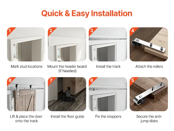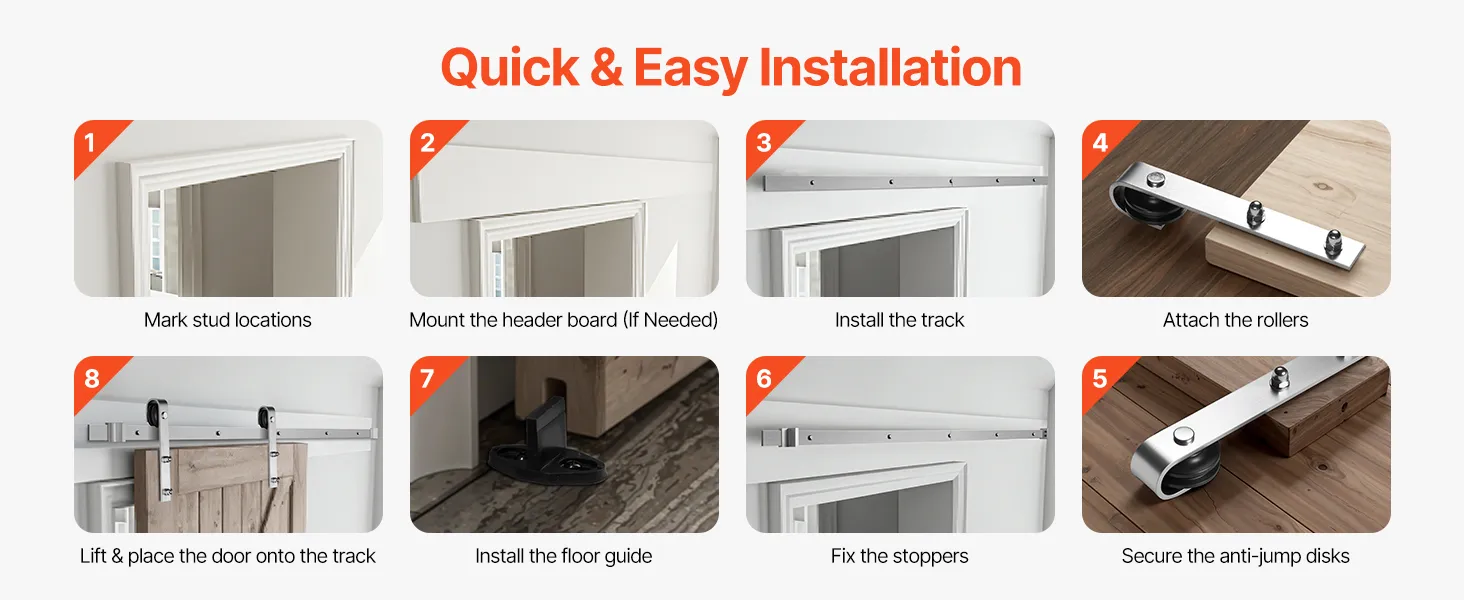 Mit dem gesamten benötigten Zubehör und einer übersichtlichen, leicht verständlichen Anleitung ist die Montage Ihres Schiebetürbeschlag-Sets ein Kinderspiel! Installieren Sie es im Handumdrehen und genießen Sie Ihren stilvollen, funktionalen Raum.