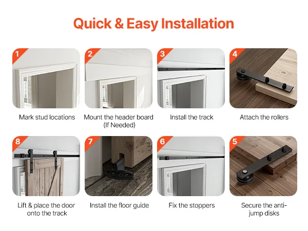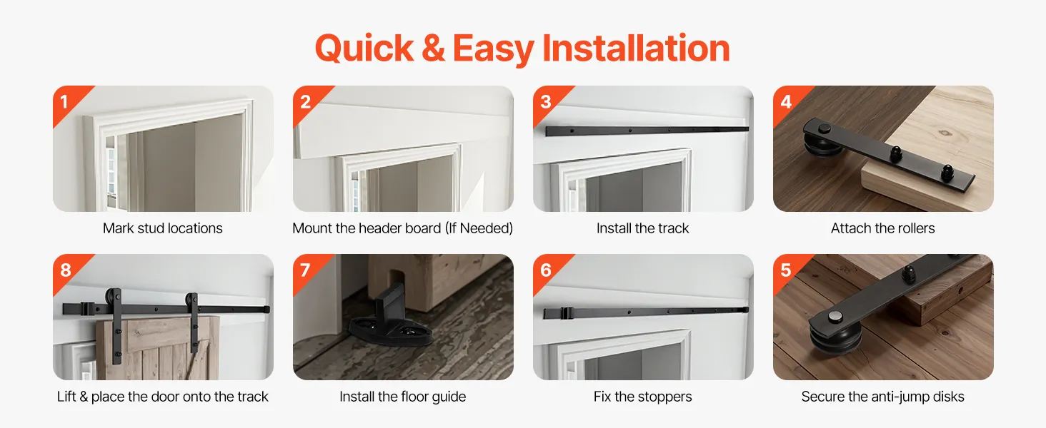 Mit dem gesamten benötigten Zubehör und einer übersichtlichen, leicht verständlichen Anleitung ist die Montage Ihres Schiebetürbeschlag-Sets ein Kinderspiel! Installieren Sie es im Handumdrehen und genießen Sie Ihren stilvollen, funktionalen Raum.