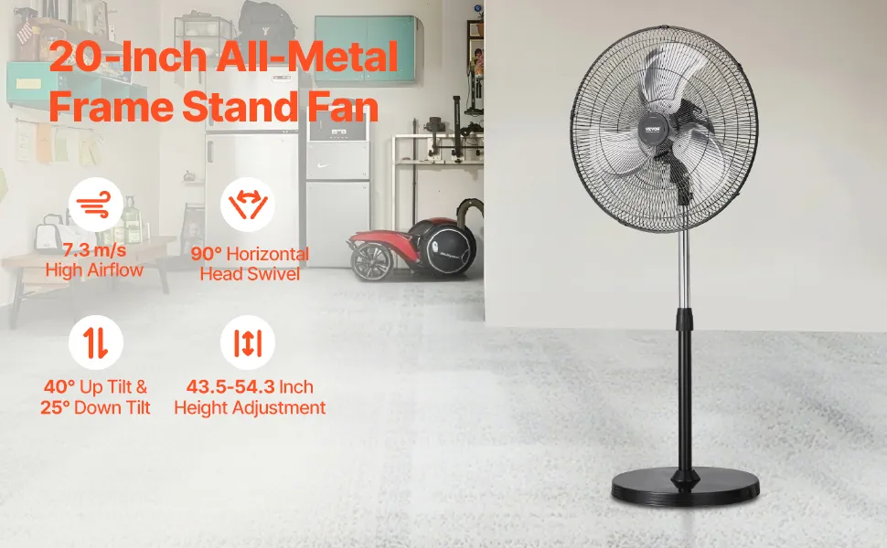3-stufige Geschwindigkeitseinstellung: Dieser Standventilator bietet 3 einstellbare Geschwindigkeitseinstellungen, sodass Sie den Luftstrom für Entspannung oder Outdoor-Aktivitäten anpassen können. Mit einem leistungsstarken Luftstrom von 5400 CFM und einer Windgeschwindigkeit von 7,3 m/s bleiben Sie kühl und erfrischt