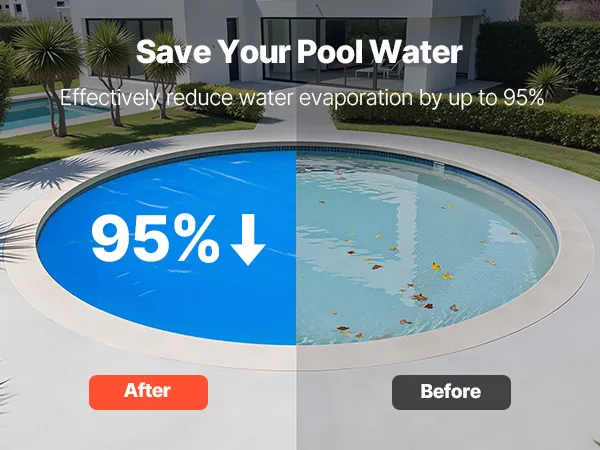 Wasser- und Energieeinsparung: Die Solarabdeckung für Einbaupools reduziert die Wasserverdunstung effektiv um bis zu 95 %, was weniger häufiges Nachfüllen und mehr Wassereinsparung bedeutet. Sie trägt außerdem dazu bei, die Verdunstung von Chemikalien zu verlangsamen und so den Wartungsaufwand zu reduzieren. Genießen Sie einen nachhaltigeren Pool mit weniger Aufwand