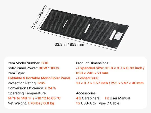 Mit hocheffizienten monokristallinen Zellen und einem Wirkungsgrad von ≥ 24 % liefert das faltbares 30-W-Solarladegerät eine zuverlässige Stromversorgung für schnelles Laden Ihrer Geräte – ein unverzichtbarer Begleiter beim Camping, auf Wohnmobilreisen, beim Wandern und Angeln.