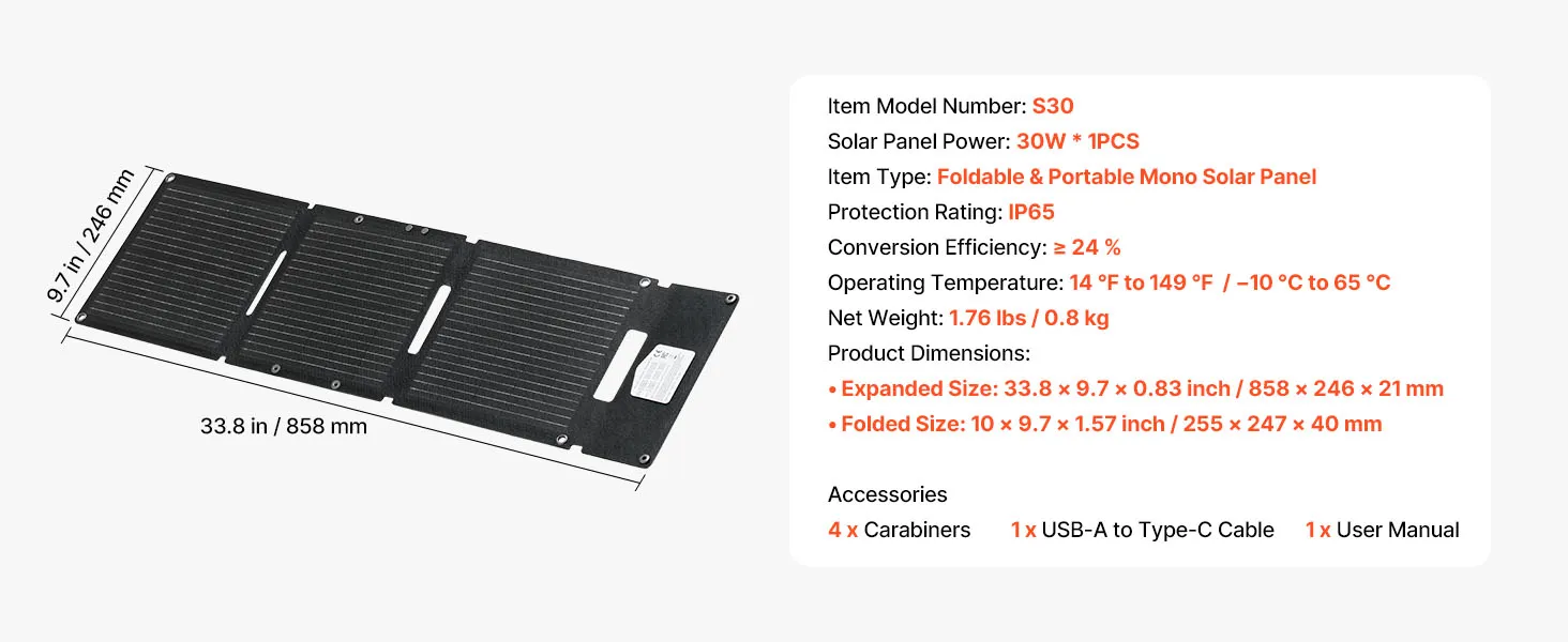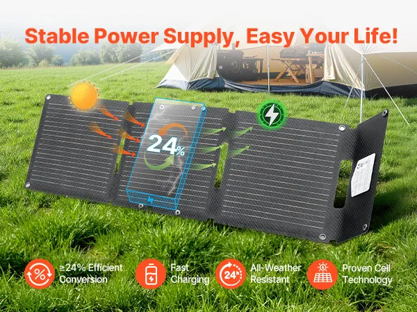 Überragende Effizienz: Ausgestattet mit 16 hocheffizienten monokristallinen N-Typ-Solarzellen und einem Wirkungsgrad von ≥24 % fängt dieses faltbare 30-W-Solarpanel mehr Sonnenlicht ein und erzeugt mehr nutzbare Energie für schnelleres Laden von Geräten