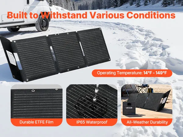 Verbesserte Langlebigkeit: Dank der Schutzart IP65 bietet dieses hocheffiziente monokristalline Silizium-Solarpanel-Ladegerät eine gleichbleibende Leistung und lange Lebensdauer von -10 °C bis 65 °C und gewährleistet so eine stabile Stromversorgung in verschiedenen Umgebungen