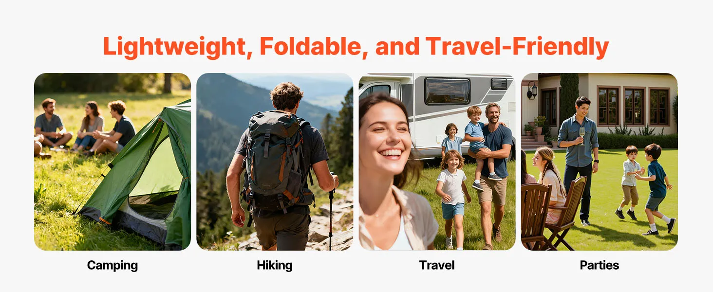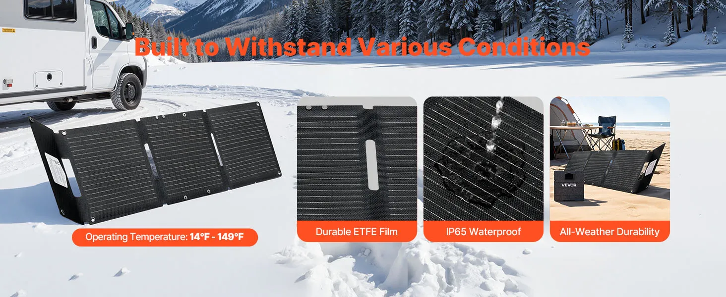 Faltbar & ultraleicht: Das VEVOR Solarladegerät lässt sich für einfachen Transport und platzsparende Aufbewahrung kompakt zusammenfalten. Mit nur 800 g ist es ideal für Camping, Roadtrips, Wandern, Radfahren und Trekking. Vier Karabinerhaken für eine einfache Montage sind im Lieferumfang enthalten