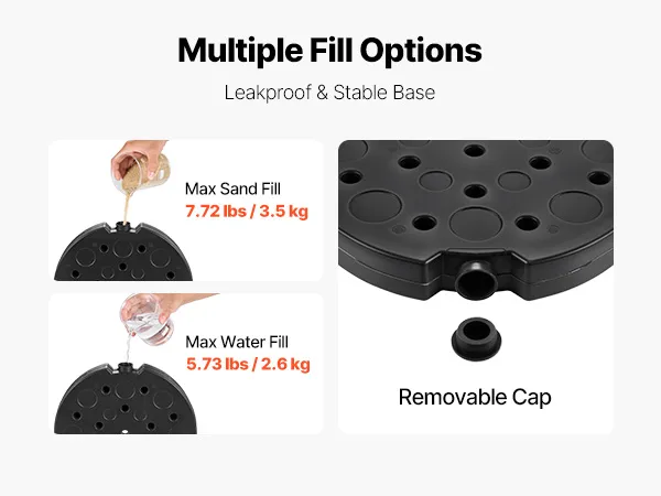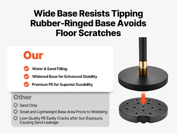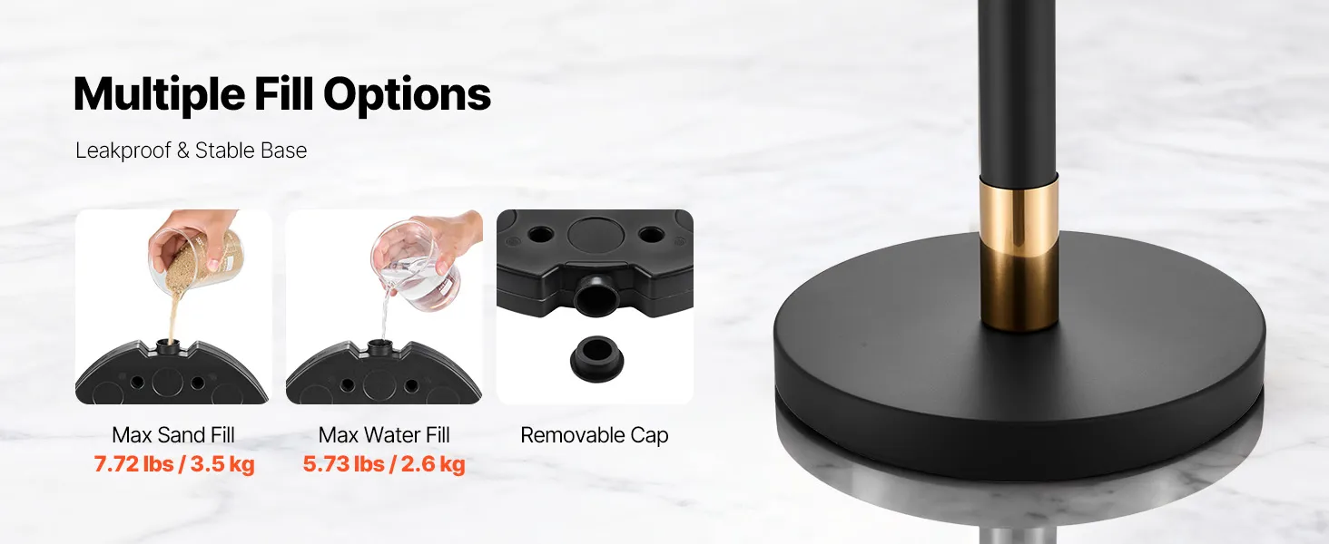 Befüllbarer und bodenschonender Sockel: Befüllen Sie jeden Sockel mit Wasser oder Sand (bis zu 5,73 lbs / 2,6 kg bzw. 7,72 lbs / 3,5 kg) und verlassen Sie sich auf den Gummiring, der ein Umkippen verhindert und gleichzeitig Ihren Boden schützt.